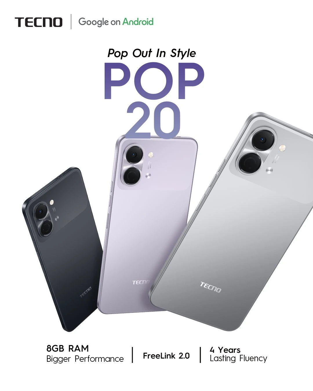 Tecno Pop 20 (128GB/4GB; 13MP Dual Camera; 5000mAh)